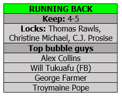 While Prosise is a lock to make the team, the other backs are trying to prove they are worth taking a fifth spot. The Seahawks typically lean toward keeping four backs, so it would be no surprise if they keep just three tailbacks and a fullback (probably Will Tukuafu).