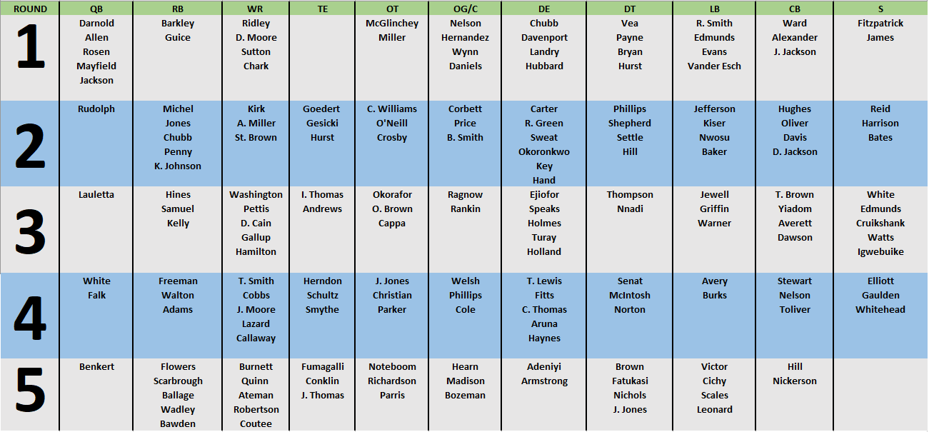 2018 draft big board (Five-round composite big board using top lists from Mike Mayock, Tony Pauline, Draft Scout and NFL.com. Click to enlarge.) Share this: Click to share on X (Opens in new window) X Click to share on Facebook (Opens in new window) Facebook Like Loading...