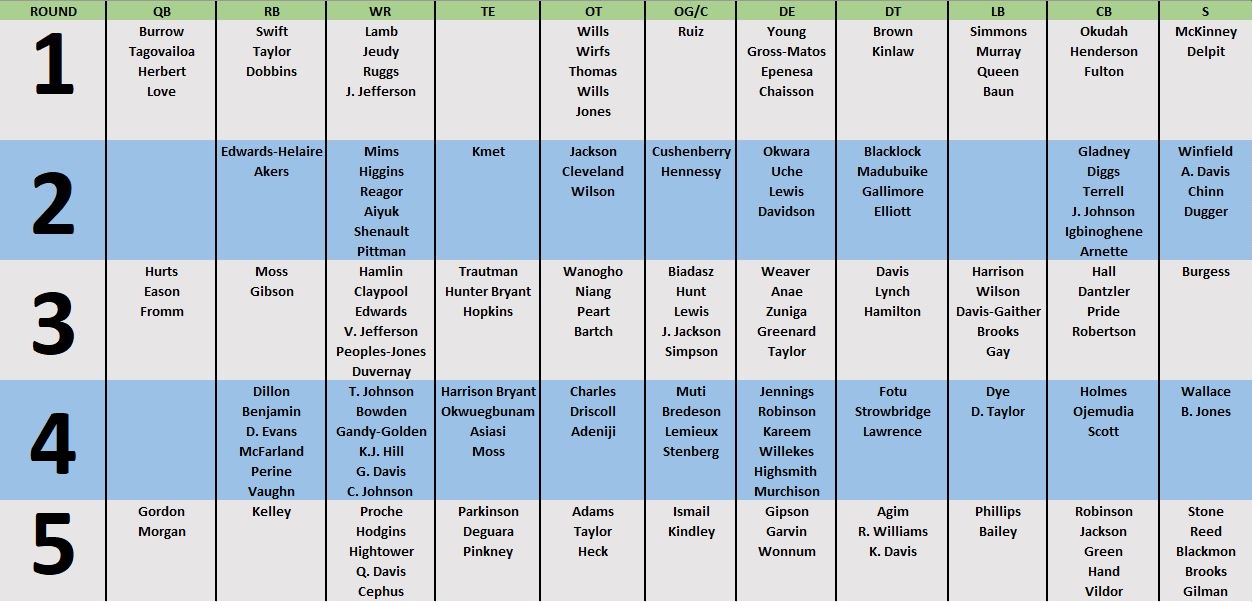 (Here’s a five-round composite Big Board based on the overall consensus board compiled by Arif Hasan of The Athletic. Click to enlarge.)