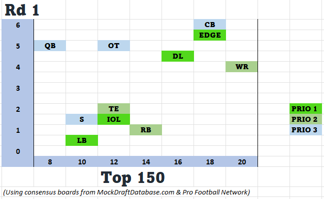 Whether they move up or down from 20, their focus over the rest of the first two days seems likely to be interior offensive line, linebacker and more defensive line — perhaps tight end as well.