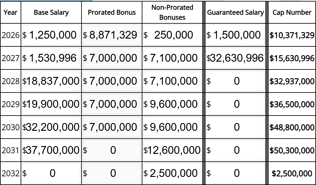 He gets a $12 million signing bonus and $14 million total in 2026.