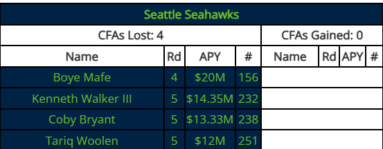 But the Seahawks had the best special teams in the NFL (by DVOA) — and all of the most important guys on those units have returned. Dareke Young is the one guy who left, joining Klint Kubiak in Las Vegas.