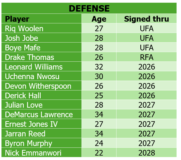With this specific group, this is a two-year championship contender. Just four defenders – Riq Woolen, Josh Jobe, Coby Bryant and Boye Mafe — are pending free agents next month.