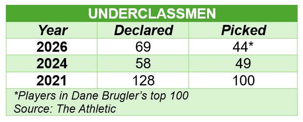 Per The Athletic, drafts now have half as many underclassmen as they had back in 2021.