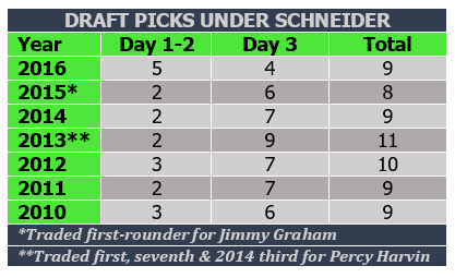 Draft pick numbers under Schneider